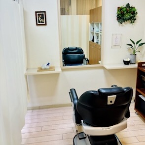 カーテンで仕切られられたスペースでリラックスして女性シェービングを受けられます。